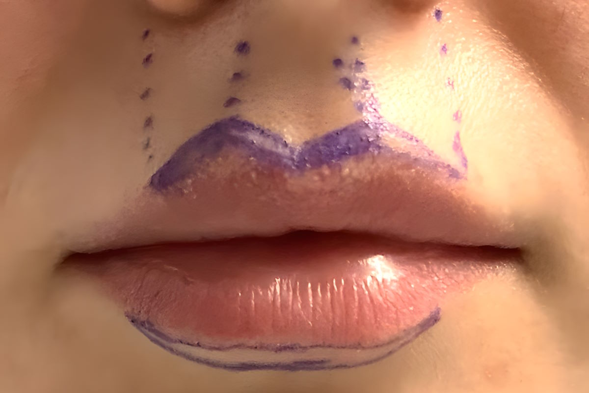 Вторая популярная техника — V-Y пластика. Она помогает увеличить объем без разрезов на лице. Хирург работает на внутренней стороне губы, со стороны слизистой. Он делает несколько надрезов в форме буквы V, сдвигает ткани и сшивает их в форме буквы Y. Губа становится более объемной за счет собственных тканей пациента.